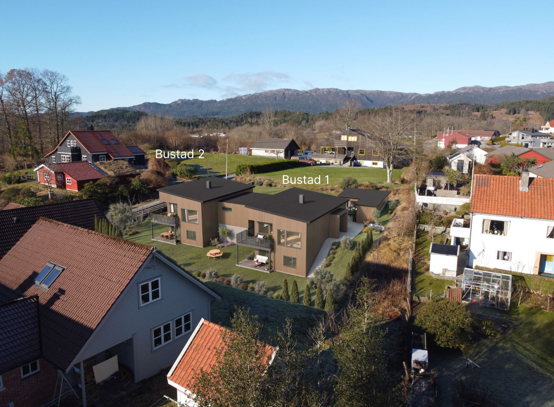 Begge bustadene har to etasjer. Det er open stove- og kjøkkenløysing i hovudetasjen. Takhøgda på 260 cm og store vindaugsflater mot utsikta gir ei luftig og god romkjensle. Terrassar og inngongsparti vert overbygd, og bustaden har eit moderne utvendig preg.